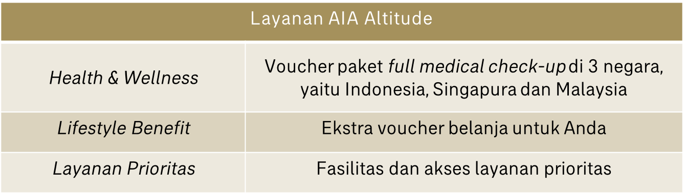 Sebagai nasabah prioritas AIA, Anda dapat menikmati beragam manfaaat dari program AIA Altitude seperti: