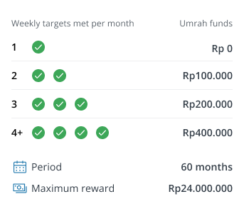3. Perhitungan reward dana umrah dilakukan dengan tenggat waktu pada hari Minggu sebelum Senin pertama pada bulan berikutnya.